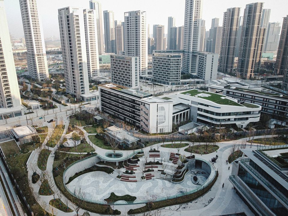这是2021年12月29日拍摄的杭州亚运村媒体村建筑(无人机照片)。当日,杭州亚运村举行竣工仪式。新华社记者 江汉 摄