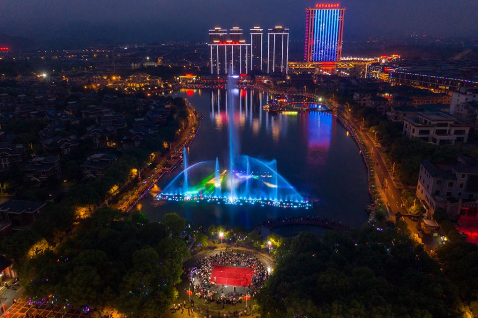 这是2021年6月4日拍摄的浙江省东阳市花园村夜景(无人机照片)。新华社记者 徐昱 摄