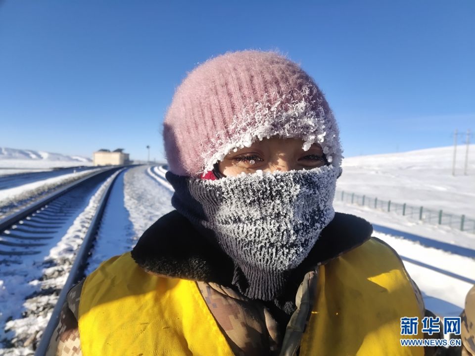 中国铁路青藏集团公司格尔木工务段职工眉毛上也结上了冰霜。