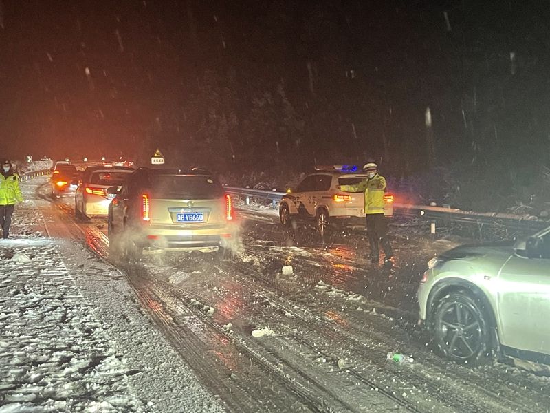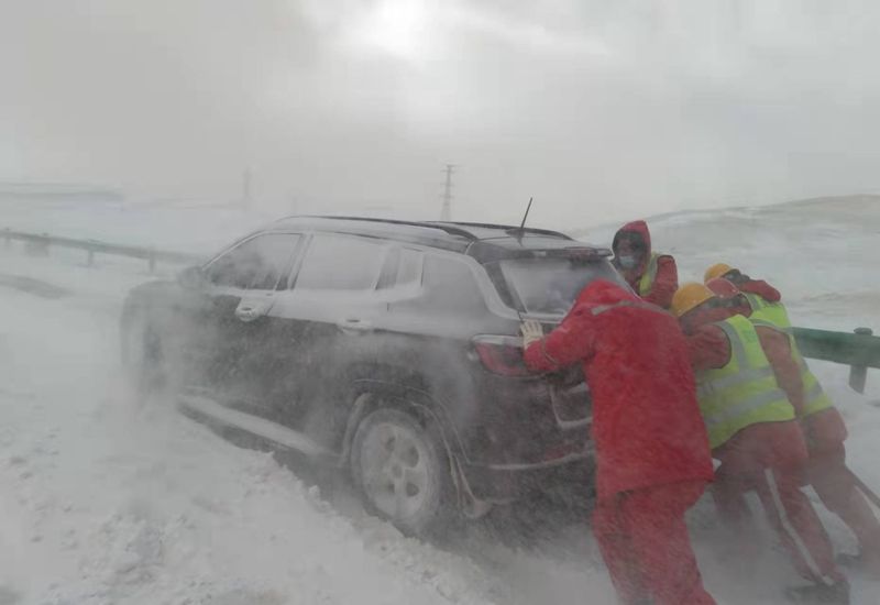 四川省交通运输综合行政执法人员在冰雪天气中,保障道路安全畅通。