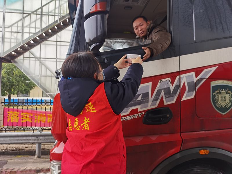 湖南郴州高速公路上的志愿者为司机递上腊八粥。
