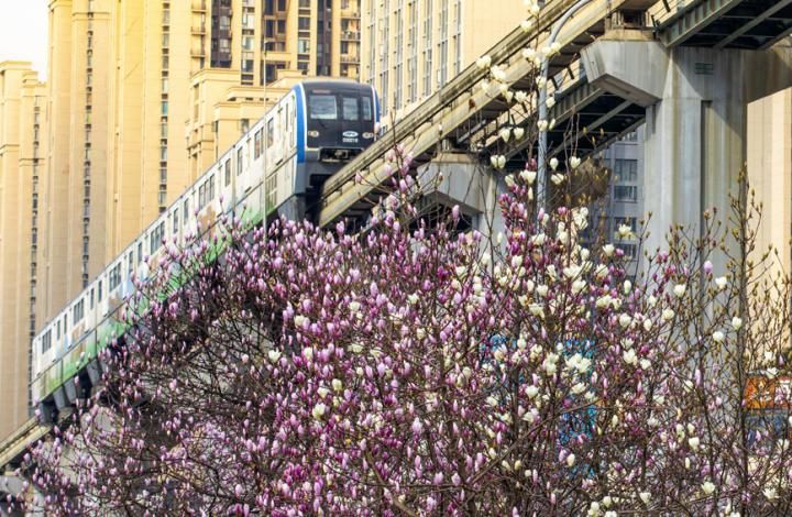 首页 重庆巴南:玉兰花开 春色挂枝头 2022-02-27 08:08:21 分享 人民网重庆2月24日电 (刘新吾、陈琦)一夜春风,唤醒玉兰。连日来,重庆市巴南区渝南大道上的玉兰花竞相绽放,如云似雪,香气四溢,蜿蜒构成一条长达十余公里的缤纷花海。来往的轻轨列车在粉红的花海中穿行,浪漫又惬意,构成一幅美丽的春天画卷。
