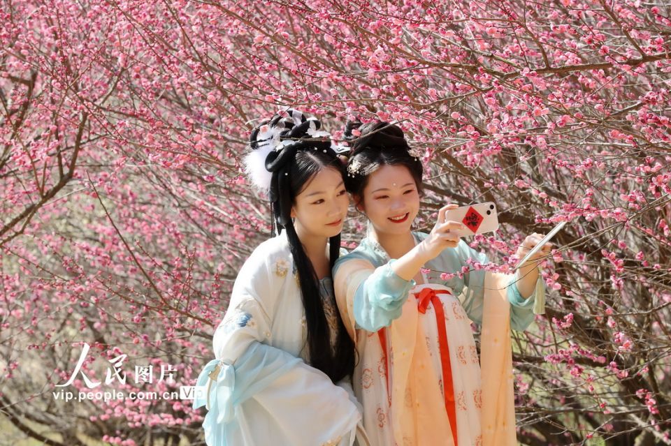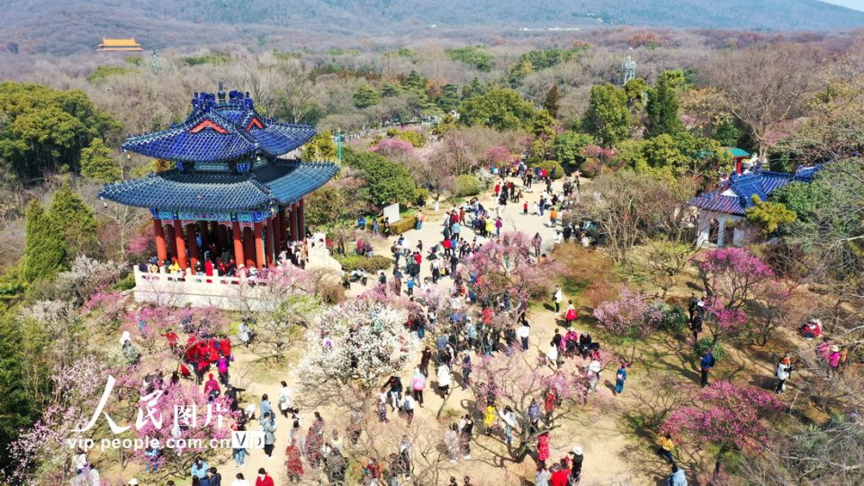 2022年2月26日,江苏省南京市天气晴好,梅花山上万株梅花盛开,吸引大批游客和市民前来观赏。杨素平摄(人民图片网)