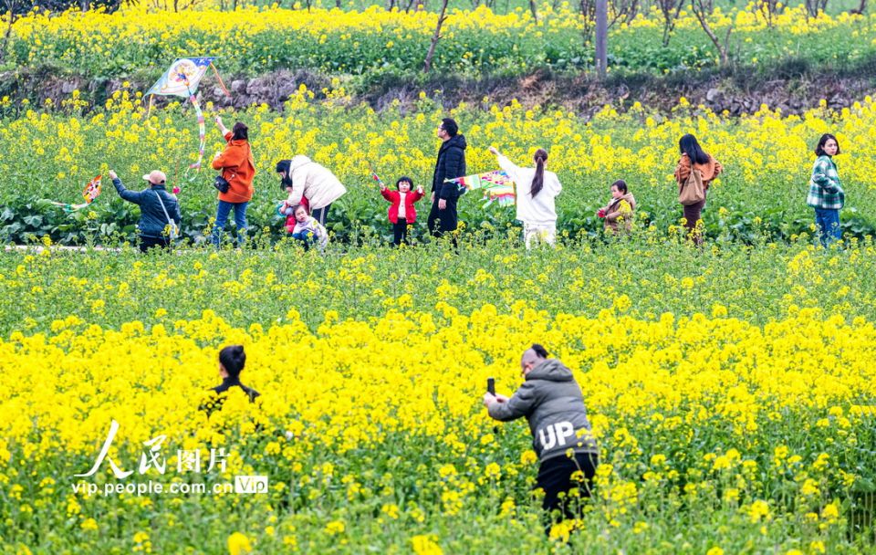 2022年2月26日,重庆市南川区天气晴好,气温回升,人们趁着晴好天气走进田野,踏青赏花享春光,感受春天的气息,享受春光放飞心情。瞿明斌摄(人民图片网)