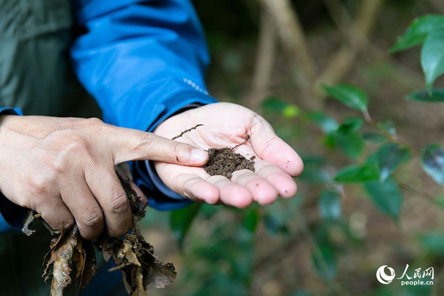 | 科考专家展示武夷山国家公园土壤情况。人民网焦艳摄 |