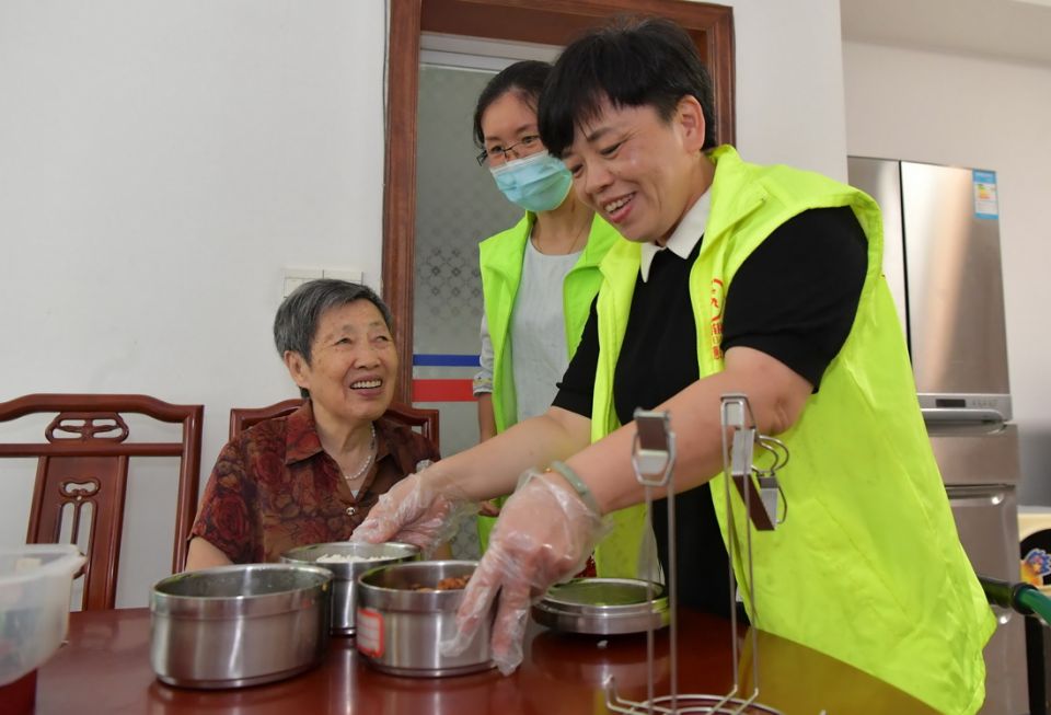 在江西省南昌市东湖区彭家 桥街道文教路北社区,“幸福食堂”的义工在给社区内出行困难的老人提供送餐服务(2020年7月29日摄)。从2018年12月起,南昌市东湖区彭家桥街 道在社区打造以党建引领、社区主导、爱心企业赞助的“幸福食堂”,专门为社区独居、孤寡及生活困难的老年人提供营养餐,以此进一步完善社区居家互助养老服 务。新华社记者 彭昭之 摄