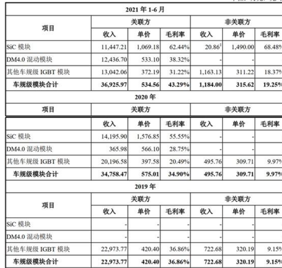 创业板上市委曾对比亚迪半导体提出的问题之一就是关联交易。比亚迪半导体在报告期内向比亚迪集团销售商品等的金额分别为9.1亿元、6.01亿元、8.51亿元、6.7亿元,占营业收入的比例分别为67.88%、54.86%、59.02%和54.24%。功率半导体、光电半导体产品、制造及服务主要向比亚迪集团销售,且关联销售的毛利率较高。