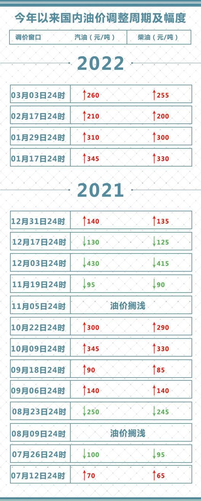 央视财经记者从国家发改委获悉,本次油价调整具体情况如下:国内汽、柴油价格每吨分别提高260元和255元。