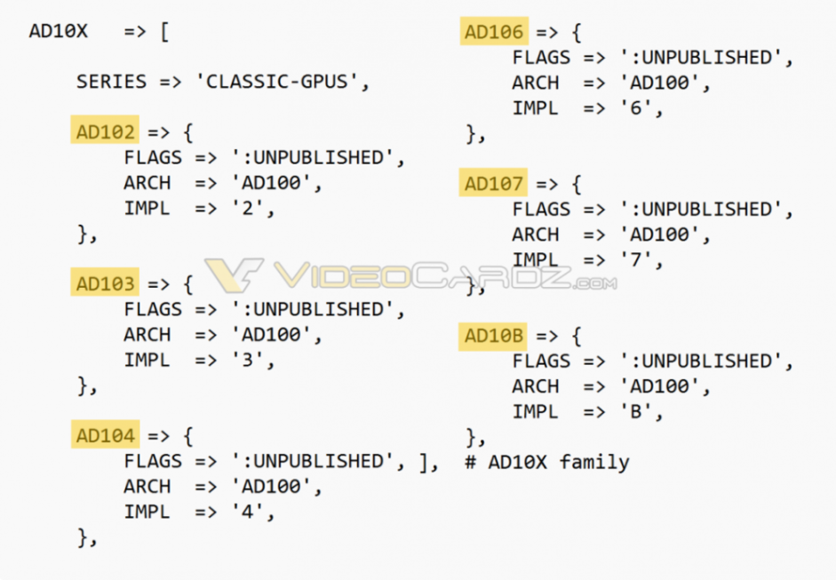 Ada将作为英伟达安培显卡的后续产品,其中型号包括,AD102、AD103、AD104、AD106、AD107和AD10B(不是108)。不过,目前还没有具体的配置信息。