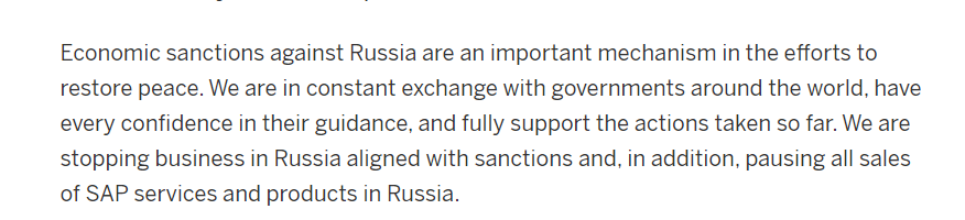 ▲SAP官网上停服俄罗斯的通知