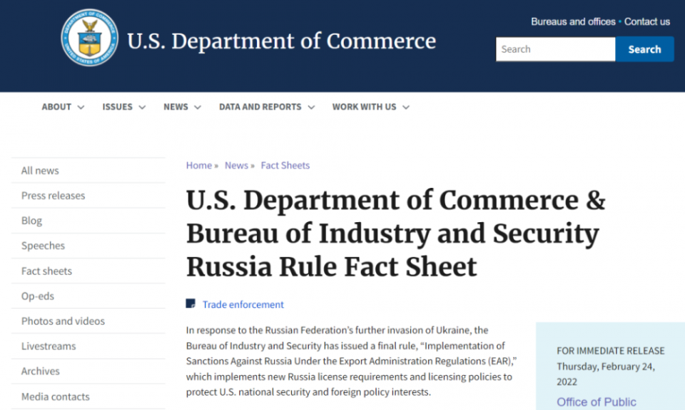 ▲BIS公布了俄罗斯工业新技术出口限制的细节