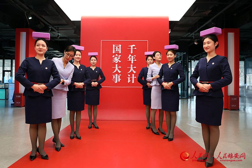 图为雄安规划中心讲解团队在训练站姿。人民网 李兆民摄