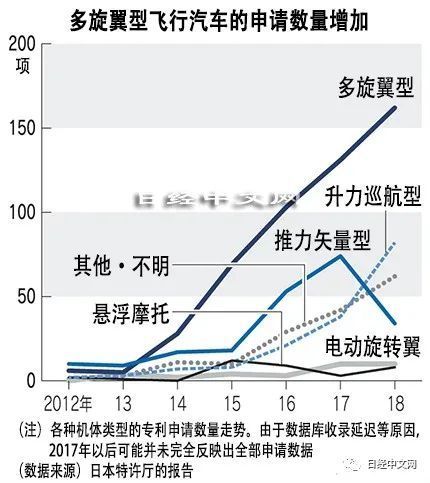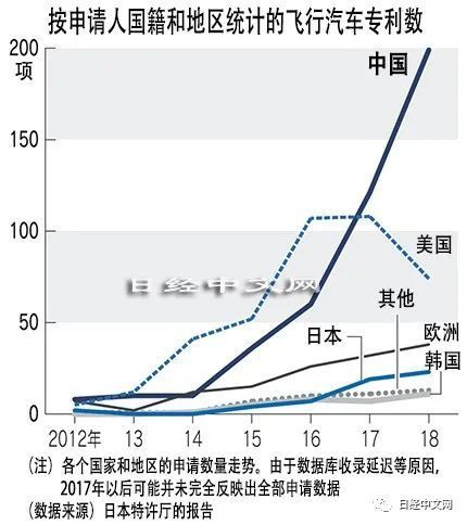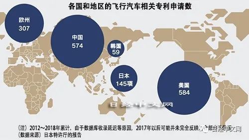 日本特许厅的报告针对飞行汽车的机体结构、马达等驱动源、电池、控制技术等,以向中美欧日韩5个国家和地区申请的专利和基于《专利合作条约》(PCT)申请的国际专利为对象,实施了统计和分析。