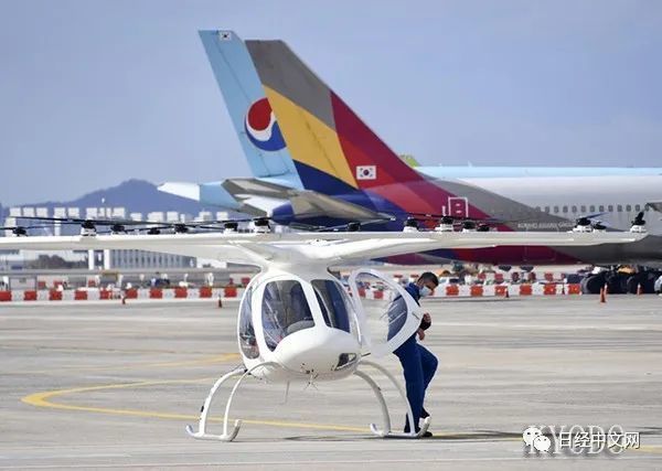 在韩国金浦国际机场试飞的“飞行出租车”(Kyodo)
