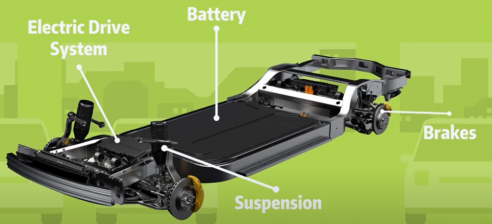 把电驱、电池、悬挂、刹车,统统装在底盘上,SUV和皮卡共用。