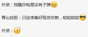 项光达8日在接受第一财经采访时回应说:“老外的确有些动作,正在积极协调。今天接到很多电话,国家有关部门和领导对青山都很支持。”