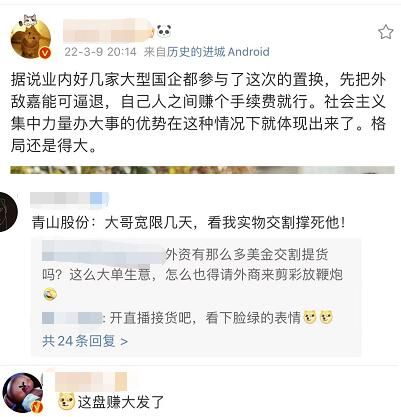 他还表示,青山的仓位和经营都没有问题。