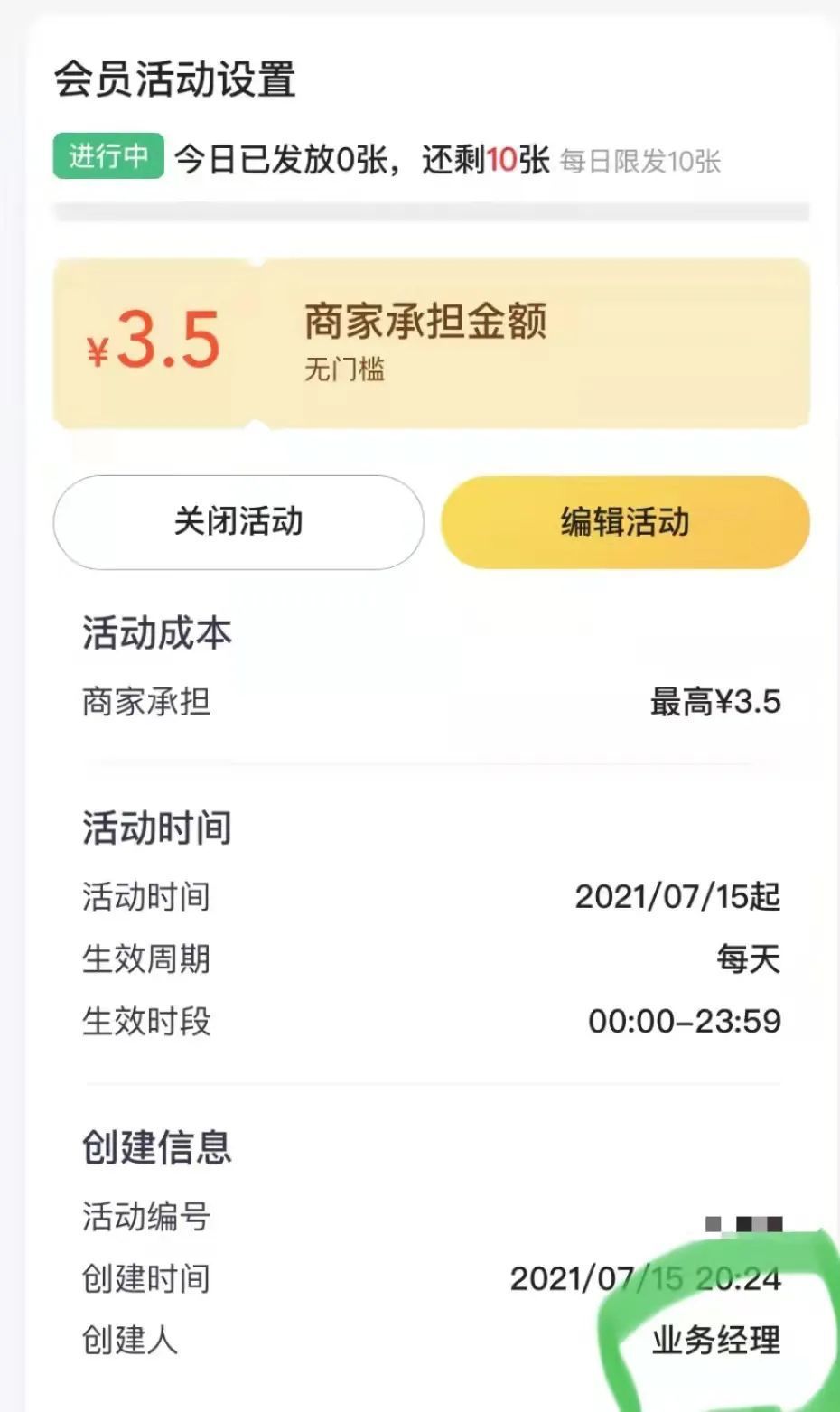 因为做活动要倒贴钱,吴桂琳就在晚上手动下架,“宁愿不做活动”。第二天一大早醒来,店里的活动不减反增,查询后台,原来是美团经理在凌晨偷偷把活动上架了。不仅是吴桂琳,很多美团商户都有过“我关你开”的经历:两个人不说话,就在活动设置页面上相互较劲。