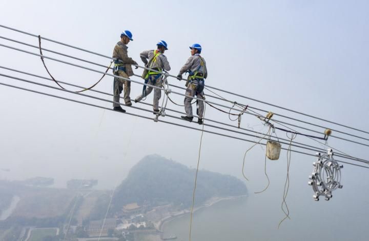 科创 白鹤滩至江苏±800千伏特高压输电工程建设如火如荼 2022-03-16 09:24:44 分享 2022年3月14日,在安徽省芜湖市鸠江区的长江边,安徽送变电工程有限公司施工人员在270米高空中进行特高压输电线路跨江作业。据悉,白鹤滩 至江苏±800千伏特高压输电工程是我国“西电东送”战略的重点工程,线路全长2087公里,途经四川、重庆、湖北、安徽、江苏。郑贤列摄(人民图片网)