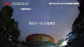 ↑中国空间站飞越四川省成都市上空