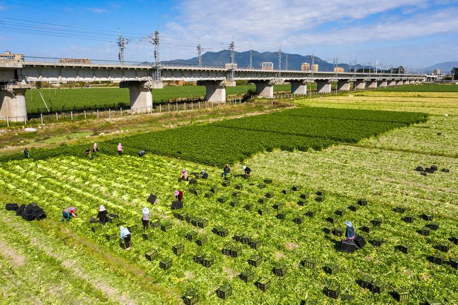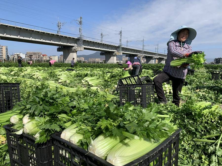 近日,福州长乐江田镇石门村的西芹迎来丰收。长乐区融媒体中心供图