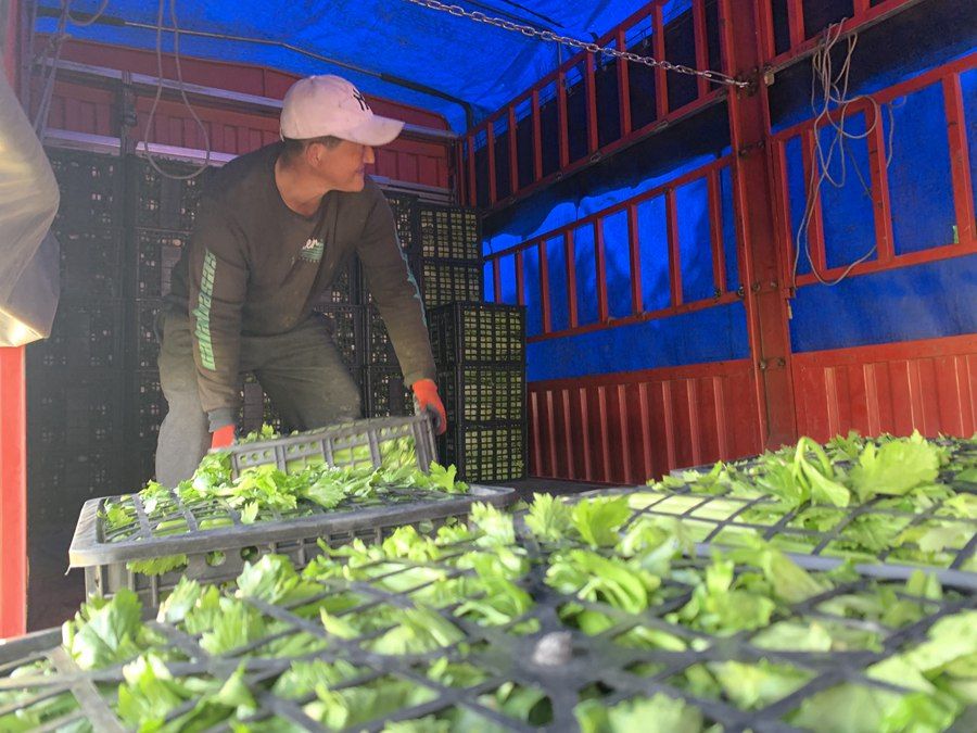 村民们正将收获的西芹装车,准备发往省内外。长乐区融媒体中心供图