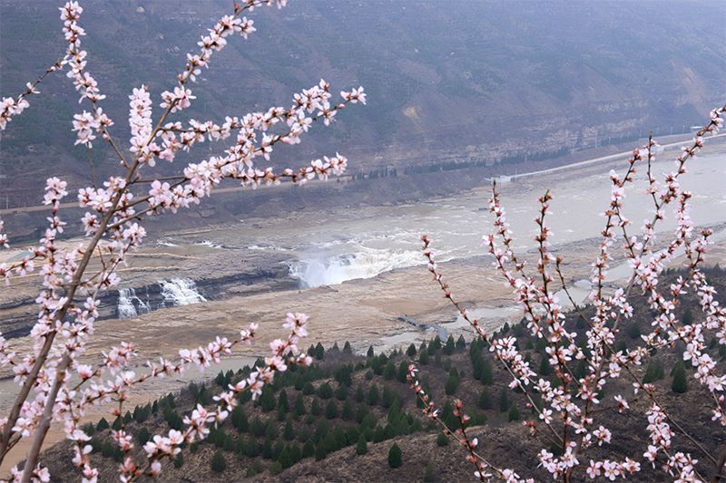 人民网太原3月19日电(记者马莹、焦搏文)随着气温快速回升,黄河上游河段解冻,近日,位于山西吉县和陕西宜川县交界处的黄河壶口瀑布水量骤然增大,主副瀑布连成一线,形成壮美瀑布群景观。此汛期恰值山桃花盛开,黄河两岸如云如霞,故称“桃花汛”。