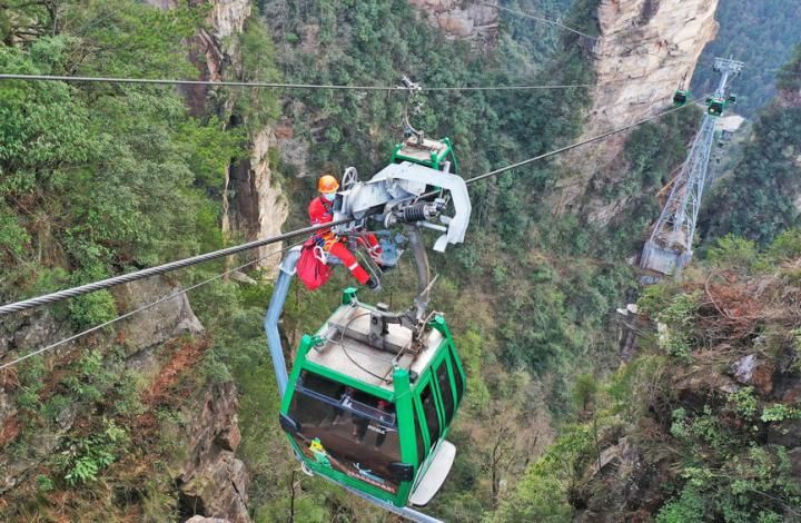 科创 湖南张家界:高空索道救援演练 2022-03-20 08:49:43 分享 2022年3月18日,湖南张家界景区在黄石寨索道开展高空应急救援演练,检验应急处置和联动反应能力,保障游客生命安全。吴勇兵摄(人民图片网)