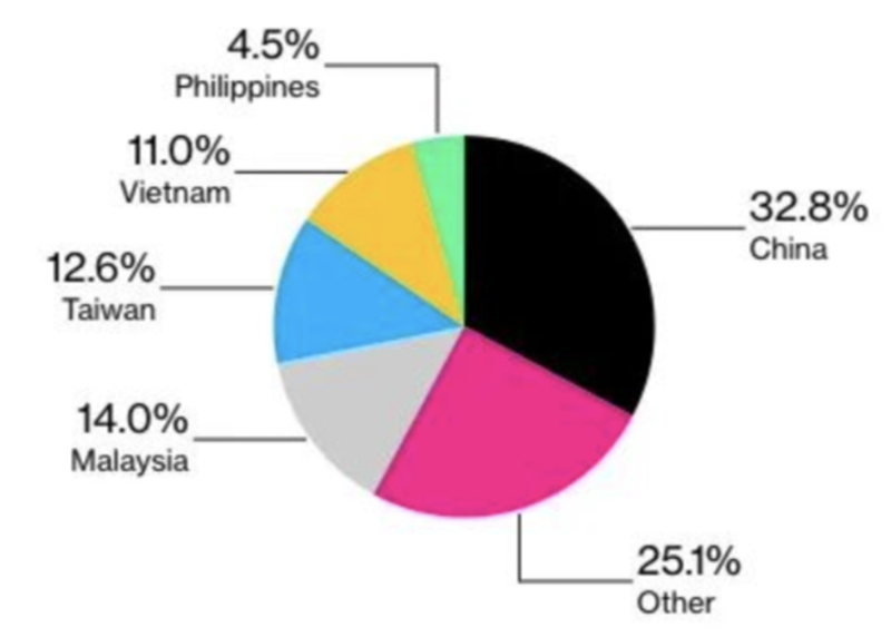▲俄罗斯芯片进口来源国