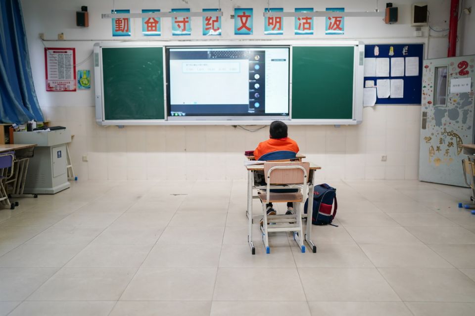 3月21日,上海市杨泰实验学校四年级六班的蒲芸帆照常从学校宿舍醒来,用完早餐,走进教室开始一天的学习生活。与以往不同的是,教室里只有他一名 学生。 由于留校住宿等原因,蒲芸帆成了班级里唯一需要在校参与线上学习的学生。据了解,杨泰实验学校共有十多名学生因各种原因需要留校参与线上学习。学校了解情 况后第一时间制定了方案,在遵守防疫政策、严格落实疫情防控措施的前提下,安排居家照护存在困难的学生到校参加线上教学。