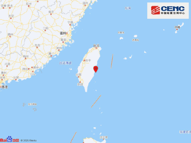 台湾台东县海域发生5.7级地震 震源深度20千米