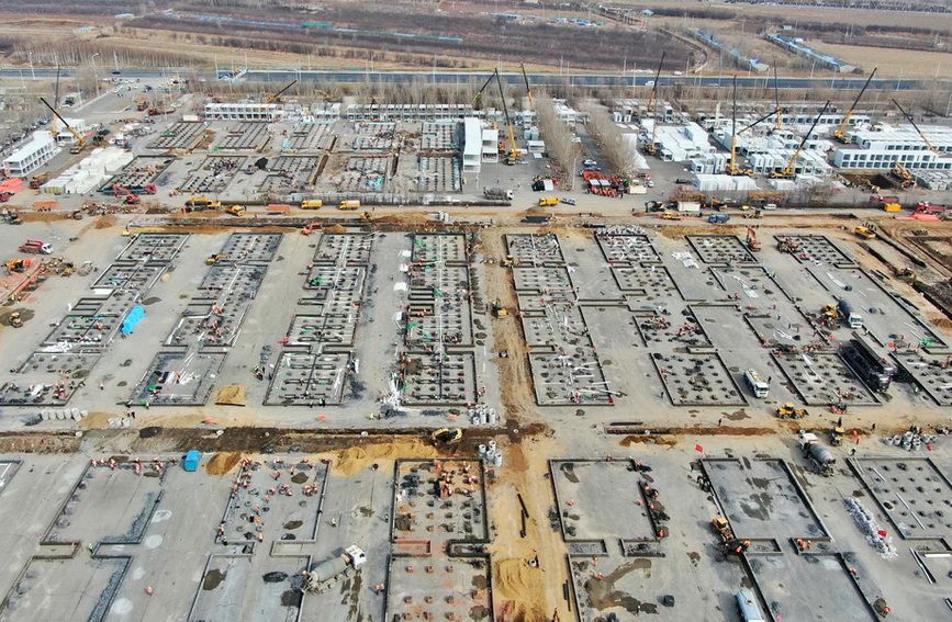 科创 沈阳建设方舱医院和健康驿站 2022-03-24 08:31:47 分享 沈阳市积极应对严峻复杂的疫情形势,按照市防控指挥部总体工作部署,从3月20日晚开始,在沈阳国际展览中心建设方舱医院应急工程和健康驿站工程, 提前准 备必要的临时救治场所。多家施工单位紧密配合,倾力打造高质量临时救治工程,助力沈阳打赢抗疫保卫战。新华社记者 杨青 摄