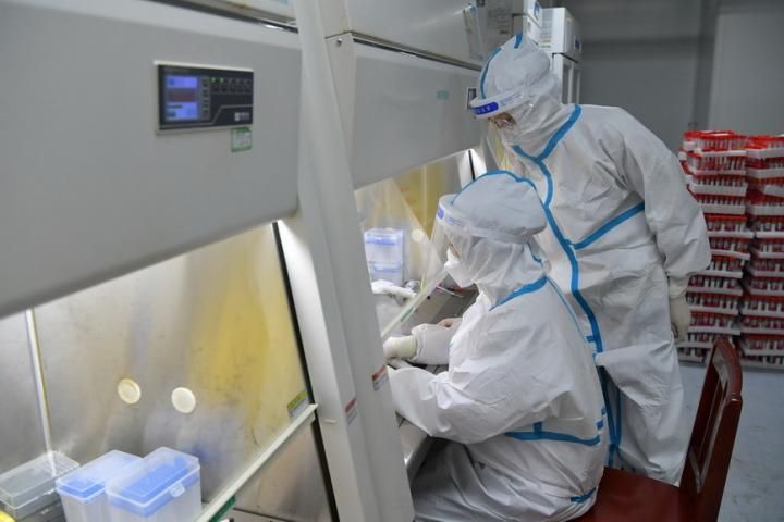 科创 核酸检测室里的“缉毒人” 2022-03-25 08:19:05 分享 在抗击新冠肺炎疫情最前沿,核酸检测员是近距离与病毒战斗的幕后英雄,检测室里的“缉毒人”。从3月17日开始,江西南昌大学二附院28名经验丰富的检测员组成核酸检测队,每天分3班不停歇地进行核酸检测。核酸检测工作是一项技术要求高、风 险大、 手工操作环节多的精细活,每一个环节都要求严谨细致,全神贯注,不能出现丝毫差错,队员们严格按照操作规范,寻找病毒的“蛛丝马迹”。截至3月22日,他 们共完成南昌市第一、二、三轮核酸检测标本4.5万余份,发出核酸检测报告48万余份。 新华社记者 彭昭之 摄