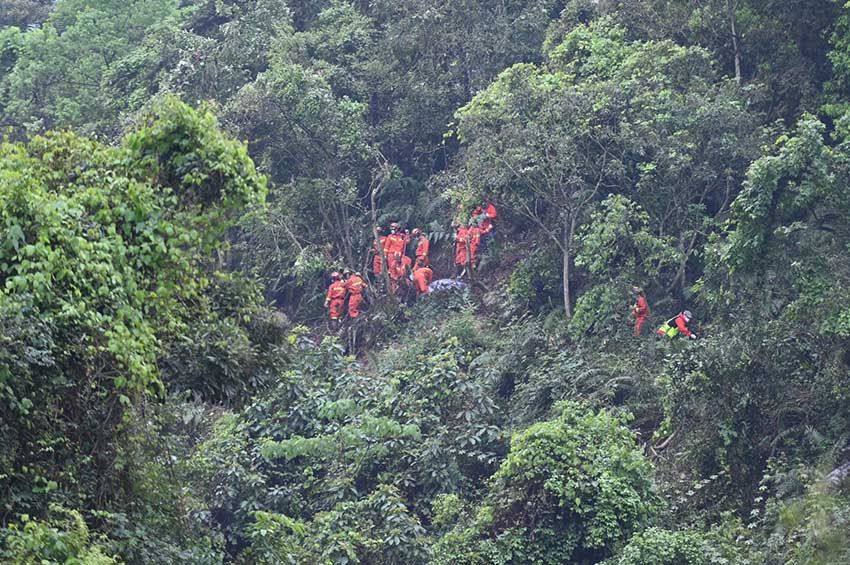 据介绍,这里地形复杂,大型机械难以作业,只有通过人工和无人机进行搜寻搜救。搜救人员克服道路泥泞、山高林密等不利条件,携带安全绳索、生命探测仪、金 属探测仪等器材在事故核心区域东面向外扩大搜寻范围,并沿飞机航线组织发动梧州市沿途内4个乡镇专职消防队、103名村屯消防网格员和速报员,对17个乡 镇范围内的266个村屯,持续开展拉网式搜寻。