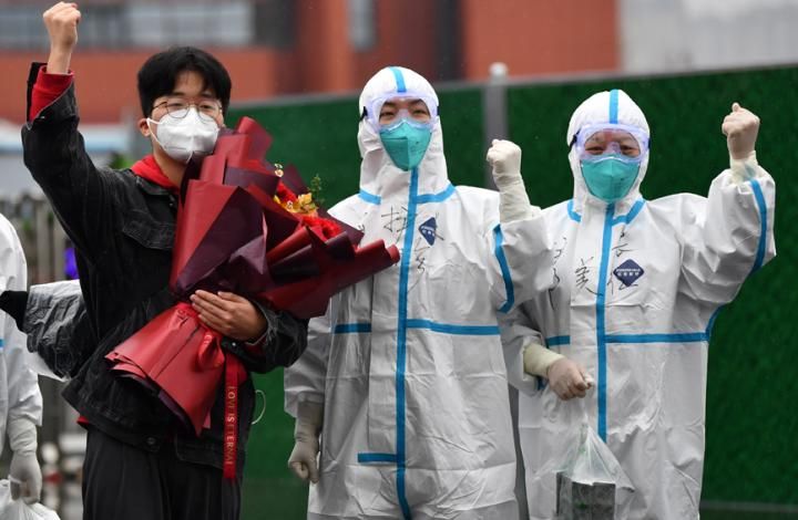 医护人员向新冠肺炎治愈者们送上鲜花表示了祝贺,并详细叮嘱了出院后的注意事项。