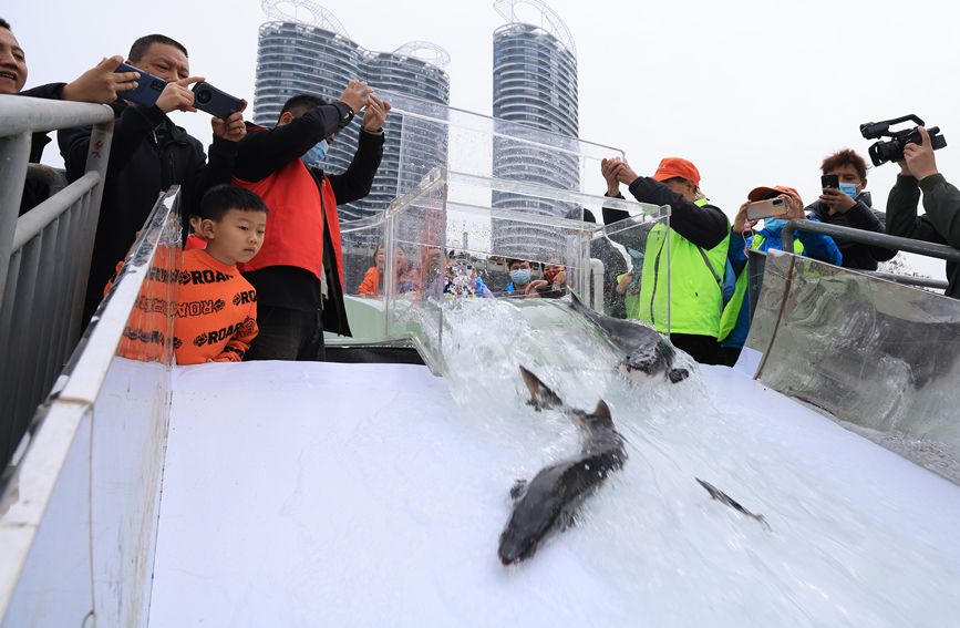 科创 湖北宜昌放流5100尾中华鲟 2022-03-28 09:15:00 分享 人民网宜昌3月27日电(肖璐欣)26日,地处长江上中游接合部的长江湖北宜昌中华鲟自然保护区举行增殖放流活动。此次增殖放流向长江投放体长 95cm至 115cm的大规格中华鲟100尾、20cm至30cm的中华鲟5000尾,对恢复中华鲟种群数量,改善和优化水域的水生生物群落结构具有重要意义。
