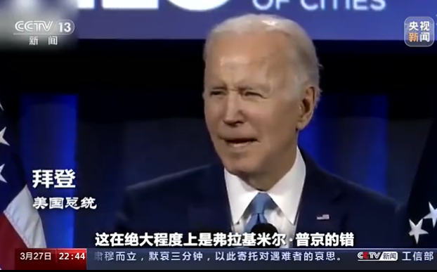 美国总统 拜登:“这在绝大程度上是弗拉基米尔·普京的错,这与美国的施政计划无关。”