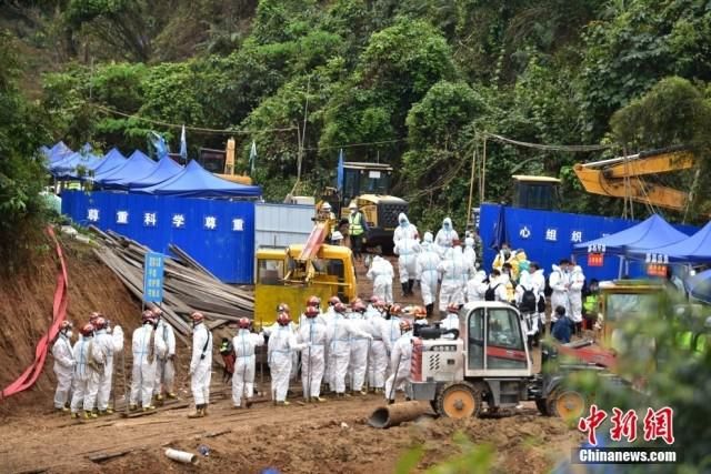 3月27日,在广西梧州藤县东航MU5735航班坠机救援现场,救援人员列队准备进入核心区。