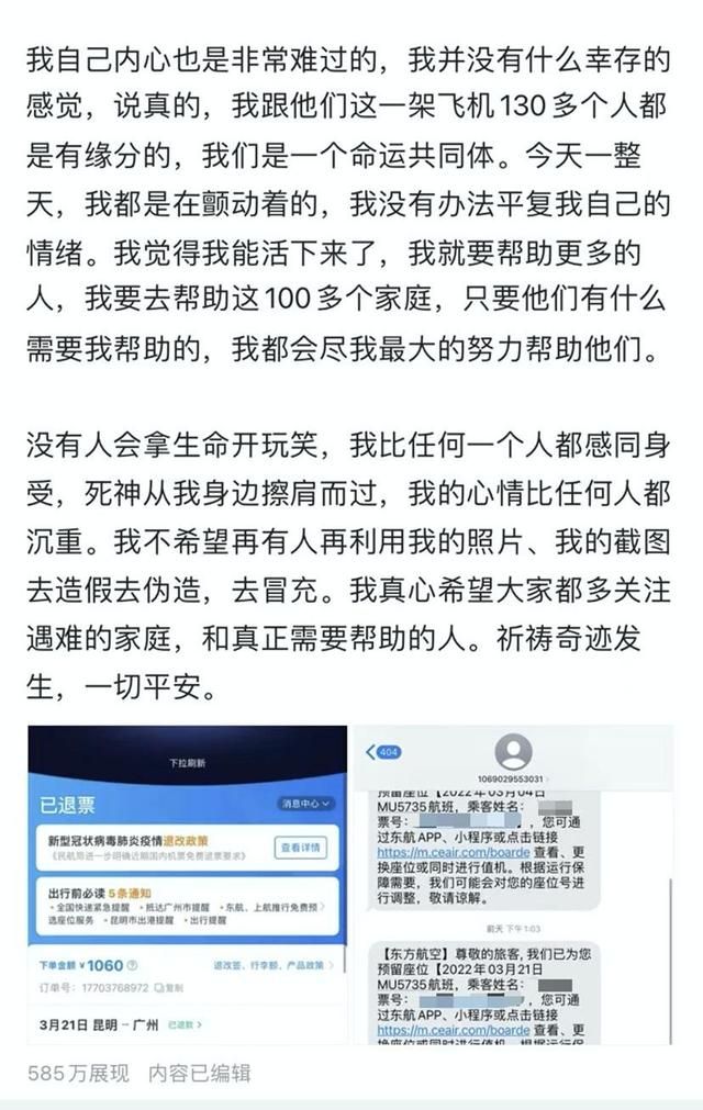 “3.21”东航MU5735航空器飞行事故发生以后,一些退票幸存者和罹难者家属选择通过社交平台分享亲身经历和怀念至亲。与此同时,许多网友也纷纷表达叹惋,感慨生命无常。