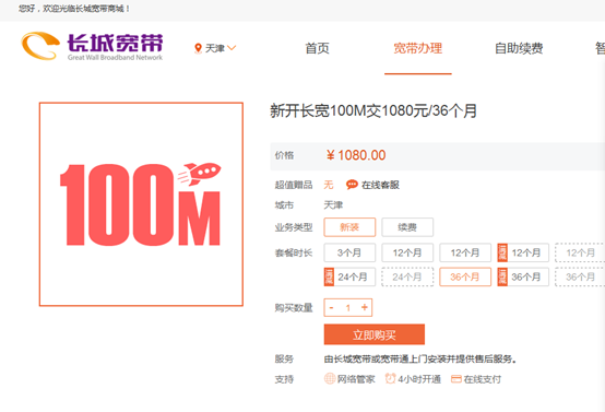 《炣燃科技》登陆长城宽带官网后发现,目前网站一如往昔,固网宽带接入套餐也仍在正常出售。