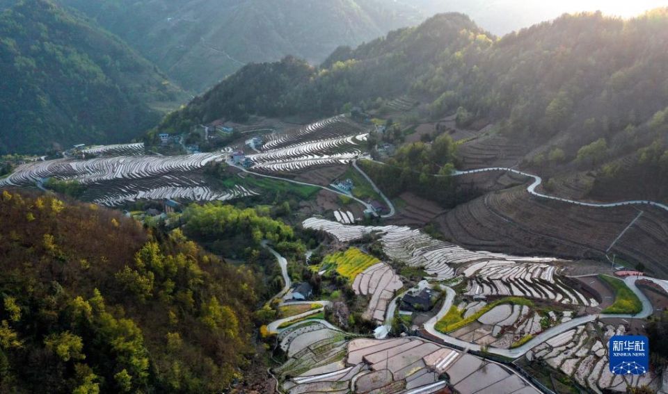 首页 陕西岚皋:水润古梯田 2022-03-30 10:53:45 分享 3月28日拍摄的南宫山镇桂花村千亩古梯田(无人机照片)。近日,在陕西省安康市岚皋县南宫山镇桂花村,因春灌备耕,沿山势自上而下层层铺叠的千亩梯田,仿佛戴上了一串串银链,构成了一幅优美的田园风光图。新华社记者 陶明 摄