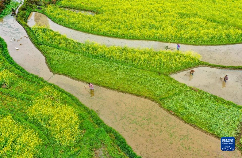 首页 清明将至农事忙 2022-03-31 10:09:06 分享 3月30日,贵州省铜仁市玉屏侗族自治县亚鱼乡郭家湾村的农民在田间劳作(无人机照片)。清明将至,各地农民忙着春耕劳作,田间地头一派忙碌景象。新华社发(胡攀学 摄)