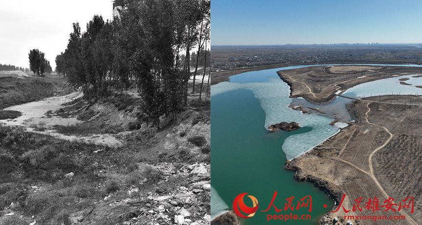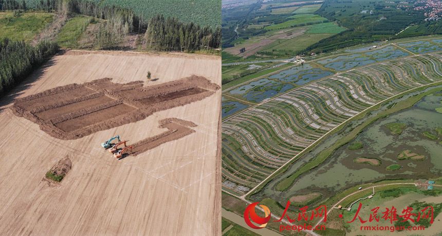 左图为雄安新区规划建设局供图,右图为人民网李兆民摄