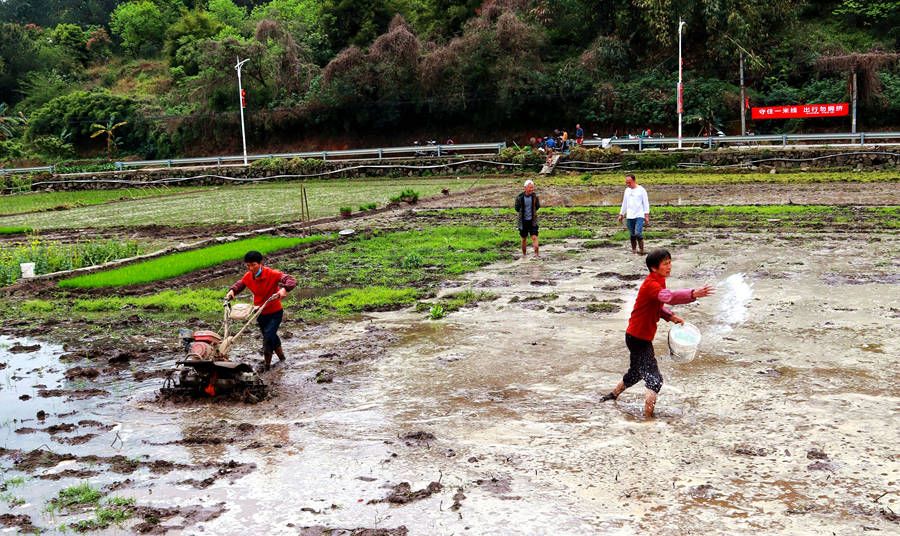 村民们在忙春耕。洪宗洲摄