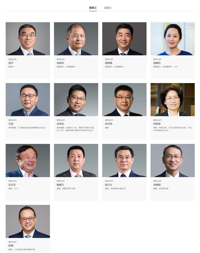据华为官网介绍,华为在治理层实行集体领导,董事会是公司战略、经营管理和客户满意度的最高责任机构。董事会及董事会常务委员会由轮值董事长主持,轮值董事长在当值期间是公司最高领袖,轮值董事长的轮值期为六个月。