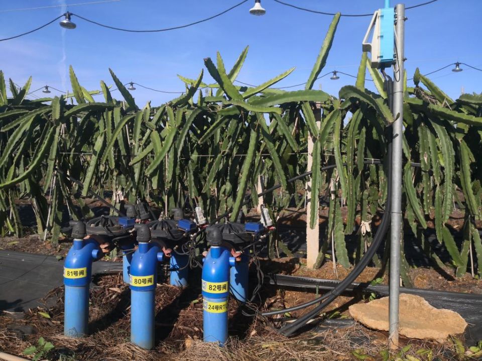 在昌江黎族自治县,涵盖生产环境监测、生产过程智能管理的数字农业基地加快涌现,为提高土地产出率、劳动生产率赋能。海南昌江兆恒农业有限公司火龙果种植基地里,技术负责人赵仁泰拿出手机查看土壤墒情、肥力,到田间稍作观察后,在手机上启动水肥一体化智能灌溉系统。