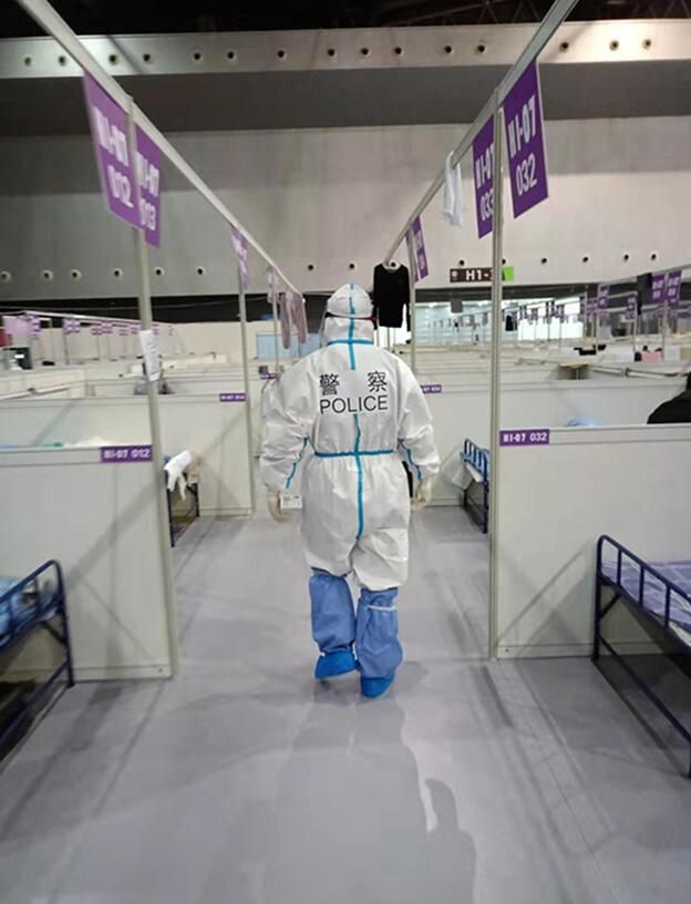 4月2日凌晨1时,来自上海市公安局刑侦总队的8名一线侦查员化身“大白”,首批进入世博展览馆执行勤务。警方供图