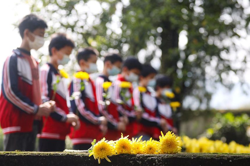 首页 江西上高:缅怀英烈 学会感恩 2022-04-05 08:59:48 分享 小学生们向革命先烈献花。陈旗海摄人民网南昌4月4日电 近日,江西省上高县田心镇的小学生和幼儿园的孩子们来到马鞍山革命烈士陵园向革命先烈献花。清明前夕,该县各学校开展了以“缅怀英烈 学会感恩”为主题的祭扫活动,营造“崇尚英雄、学习英雄、捍卫英雄、关爱英雄”的浓厚氛围,引导孩子们在缅怀革命先烈的同时,感恩他们用鲜血为我们换来的幸福生活。(罗娜、陈旗海)