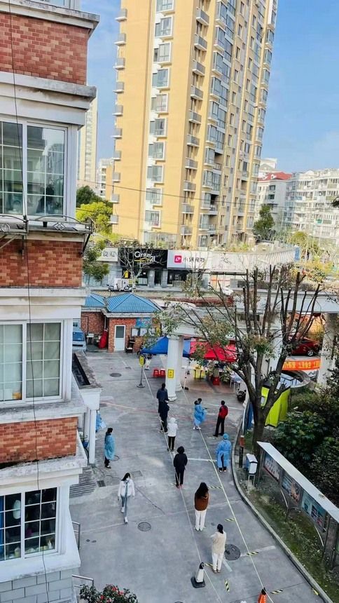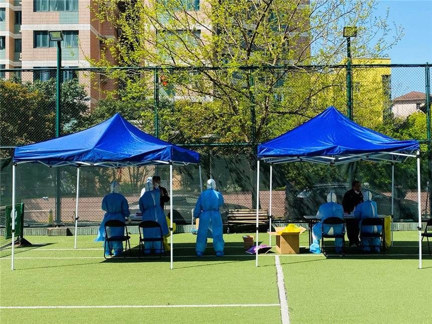 闵行区古美街道内一小区居民有序进行核酸检测。 张力钢摄