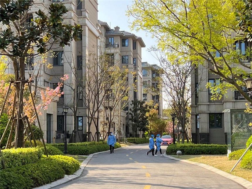 上午10:50,浦东新区曹路镇银丰苑小区有序开展全员核酸检测。人民网 葛俊俊摄